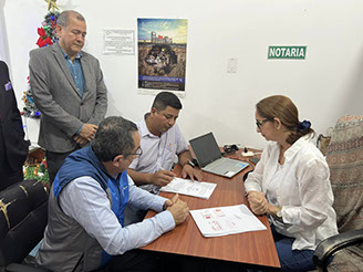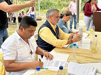 Durante este encuentro se llevó a cabo la firma de convenio interinstitucional con el Gobierno Autónomo Descentralizado Municipal del Cantón Colimes, para el trabajo en conjunto en procesos de educación financiera y acompañamiento a los sectores productivos, suscribieron el convenio la Gerente General subrogante, Ing. Paola Aguilar y el alcalde Mvz. Alex Quinto.