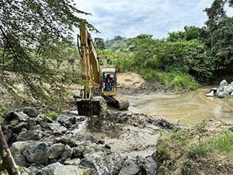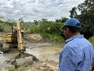 Para constatar los trabajos que se ejecutan en la zona alta de Colimes, nuestro alcalde Alex Quinto se trasladó hasta el recinto mesada de abajo donde se realiza la colocación de ductos cajones, permitiendo habilitar el paso peatonal y vehicular. Mejorando la conectividad de las familias de este sector, ya se está interviniendo el segundo estero “las muras” en la comunidad mesada de arriba. Esta obra tan anhelada por los moradores de varias comunidades, beneficiará a esta zona productiva de nuestro cantón, facilitando la movilidad y generando progreso y desarrollo día a día.