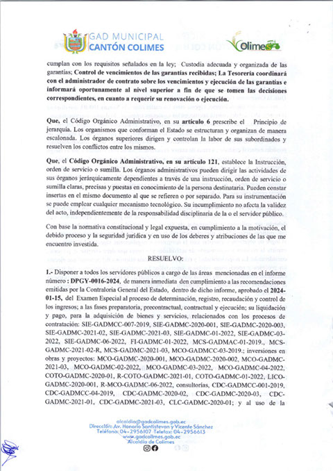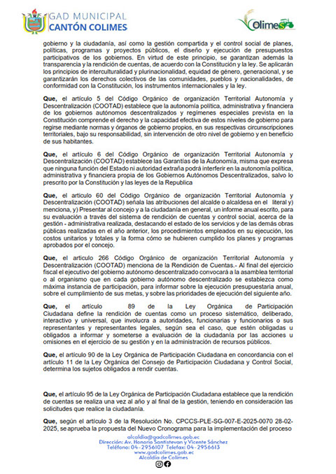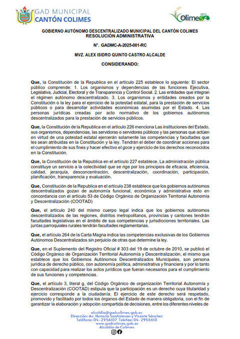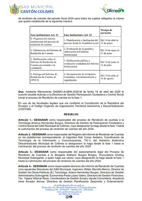 GOBIERNO AUTÓNOMO DESCENTRALIZADO MUNICIPAL DE COLIMES 2025 (LOTAIP Art. 7 Lit. O)