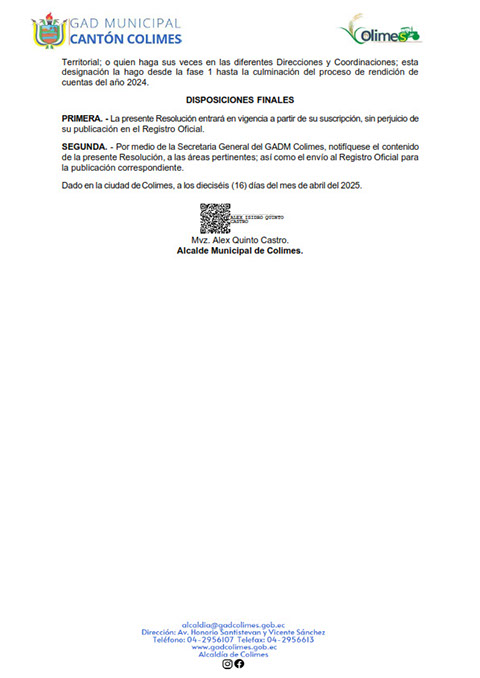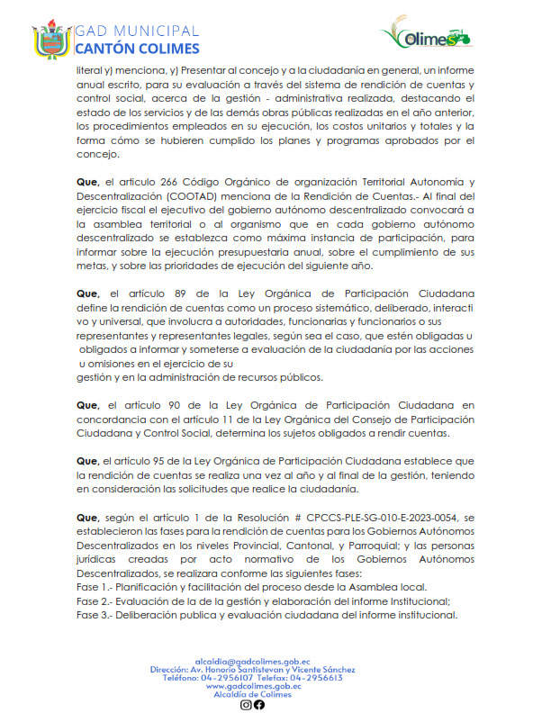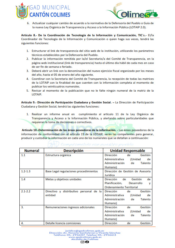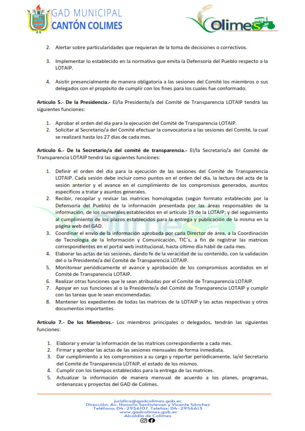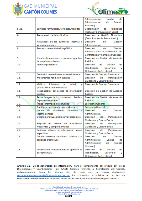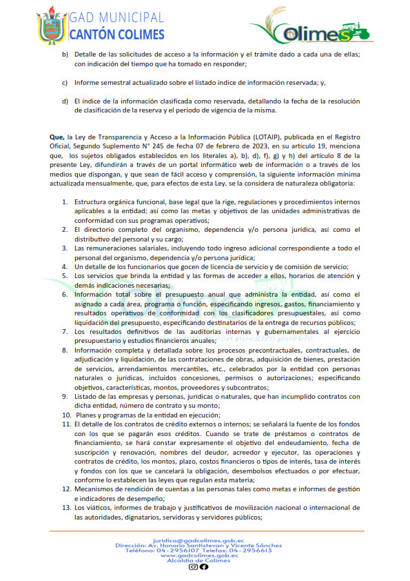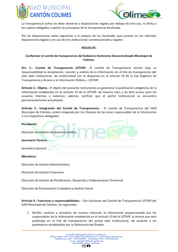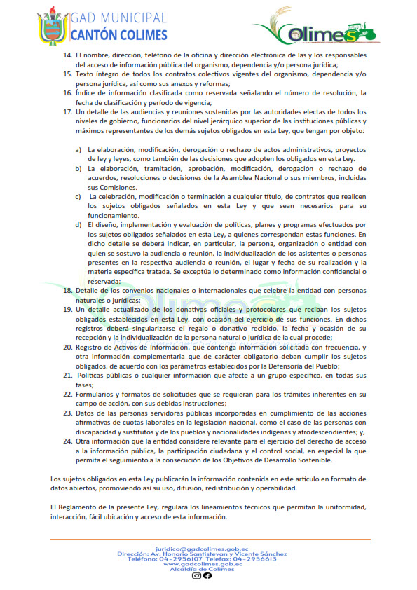 GOBIERNO AUTÓNOMO DESCENTRALIZADO MUNICIPAL DE COLIMES 2025 (LOTAIP Art. 7 Lit. O)