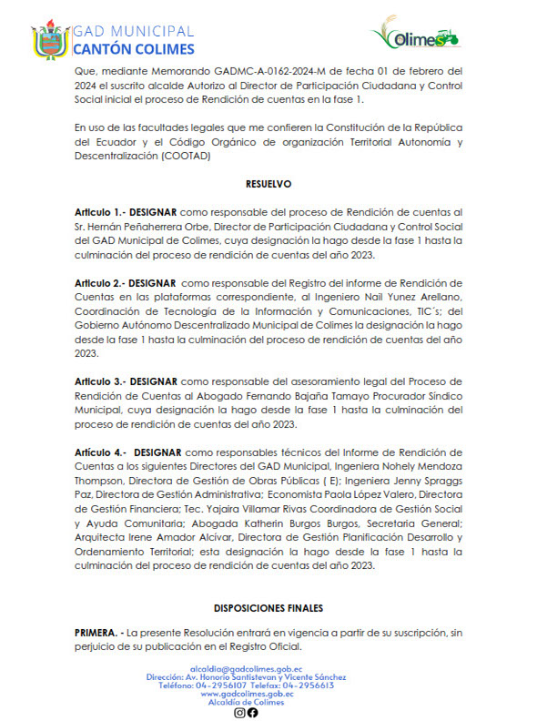 Resolución de inicio de la Fase 1 de la rendición de cuentas 2023